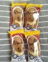蛋糕本体虽然是熟悉的香蕉形状,但上头有用咖啡色线条勾勒出来的皮卡丘轮廓,就连腮红也看得到。同样是随机六款图案,其中还有机会拿到隐藏版的尾巴图案喔!