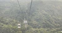 这天选择底部透明的水晶缆车,一开始上车信心满满,随着高度越来越高,我渐渐不敢望向脚底下...隔着猫缆拍移动中的缆车,还有对向的小朋友跟我比YA,太可爱了~