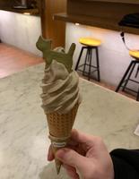 讲到猫空就会想到茶叶,所以走完步道,跑来尝尝一直嚷嚷要吃的茶香霜淇淋。有包种茶还有铁观音两种口味,我选铁观音(不要问我为甚么哈哈哈),上面放了一个猫咪饼乾当装饰,害我都舍不得吃了。一入口茶香四溢,有一点甜,我一个人可能吃不完(╯▽╰)
