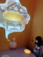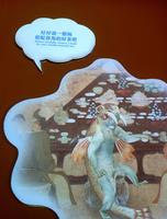 进入展区首先看到闻香品茶座,根据南宋刘松年《撵茶图》做发想,跟着互动版上规则了解古人制茶流程及文化,整体跟现在日本茶道差不多,孩子年纪太小显然兴趣缺缺,最后在婆婆认真介绍,女儿满脸问号的状态下结束这一回合。
