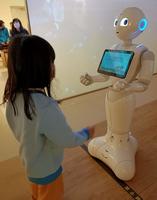 机器人导览,平常无法玩平板手机的女儿大滑特滑一阵子。