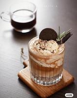Oreo饼干4片、咖啡、淡奶油100g、牛奶100ml、糖3g、海盐