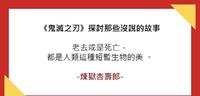 完全展现炎柱-炼狱杏寿郎的名言「老去或是死亡,都是人类这种短暂生物的美。」很多很棒的作品,有着磅礡的开头,丰沛的人物设定、扎实的故事架构,吸引者众多读者,无形中形有了「棒到不能完结的存在」的包袱,有时到最后演变成作者也不知道该如何收拾的局面,或者可能因为作者也担心下一部作品无法再创高峰,而造成脱系的可能。