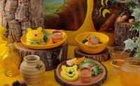 特别限定菜单,加入蜂蜜制作的汉堡、沙拉以及苹果咖哩,做成维尼的样子,可爱又美味满分。使用的食材都是健康自然的有机食材。