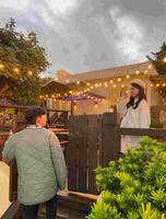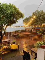 户外用餐区超赞是木头桌椅而且有美美的灯饰?