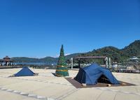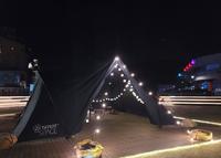 日月潭伊达邵地区自今年9月疫情降级以来,游客持续涌入,伊达邵游客中心也以「露营美学」概念,与tw在地Tiitent公司合作,用热门的SPACE与M33帐篷搭配耶诞树布置码头广场,更欢迎游客进入SPACE内部体验与拍摄网美照。
