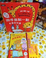 点点书1 ?用手指点点,有声认知书这本有国语、闽南语、英语三种语言,用笔或手指头点一下,就可以听到单字发音。内容包含:25个主题、368个生活常用的单字、140题互动问答游戏、12首中英文儿歌~