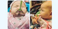 辛苦的示范这种习以为常的动作给她看,才觉得原来吃个饭这么难,光光咀嚼和吞咽而已,就学了一个礼拜,两三个礼拜后才习惯用上唇将汤匙上的食物刮下,一个月总算是驾轻就熟了。之后还有用手拿取食物并吃进去,用汤匙吃等课题,真是不容易啊!