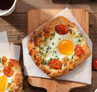 用一份简单却丰盛的早餐选择,让你精力充沛的开启一天的能量。这款鸡蛋意式薄饼,将面包吐司撒上马苏里拉奶酪,西红柿和欧芹烤制金黄酥脆。中间在配上一颗诱人的半熟太阳蛋,这样一整片吃起来再搭配一杯香浓咖啡,饱足感十足!