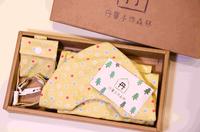 是「丹宝手作森林」的两条围兜、背巾布、奶嘴链、平安符袋,