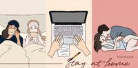在家防疫就是床上运动的最佳时间了!待在家不分日夜都可以玩~什么姿势都练起来,防疫期间运动还是不能少的!记得要保持1.5公尺以上的距离哦♡