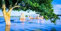 坐在那,看着淹水的地方,每个人在水中步行的模样。