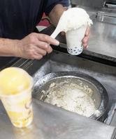 先来杯超级芒果爽。以老制冰机制成的芒果绵绵冰,吃得到芒果纤维,加入些许炼乳、牛奶与芒果果粒,整杯味道非常芒果。这次吃到的芒果果粒纤维较粗且偏酸,但整体依然甜度适中,有满满的芒果香气。
