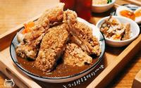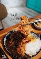 炸鸡腿排外皮薄、酥脆,咬下去竟然爆汁!肉质鲜嫩可口。以炸鸡腿排佐特制咖哩酱一口接着一口慢慢吃,香味四溢。每口都要咬很多下,细细品嚐特制咖哩与炸鸡融合的风味。