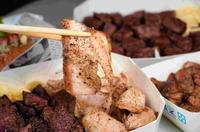 tz美食推荐。潮食牛在tz夜市可是超人气美食小吃,每次摊位前都是满满排队人潮,因为又油又香的肉肉真的让人难以抭拒,潮食牛从西班牙国宝猪、伊比利松阪猪、美国Prime霜降牛排到日本A5和牛都吃的到,路过摊位时那炙烧的香气实在诱人,配上香辣的蒜片跟洋葱真的有够赞!