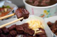 光是站在潮食牛摊位前点餐时看到这满满的肉山真的就让人受不了对吧!是不是想要说老板每种都来一份~哈哈哈!