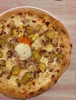 一上桌披萨铺满整个盘子,上面还有一颗半熟温泉蛋,视觉效果相当好。