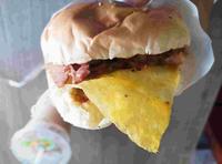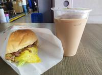 燻鸡也是块状鸡肉,不是一般早餐店的片状燻鸡,肉量相当丰富,吃到汉堡包快没了,还是夹有鸡肉。