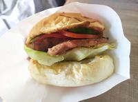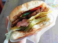 他们家的汉堡并没有添加过多的美乃滋等调味料,而是使用食材堆叠起来,里头夹有蛋、小黄瓜、牛蕃茄、生菜及肉片