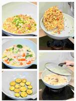 今日菜单?葱爆火腿蛋炒饭?奶油白酱炖鸡肉?蛋香煎栉瓜
