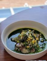 在海葡萄玉米粒特制巴西里油的点缀之下