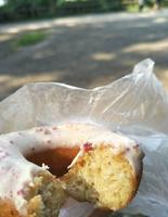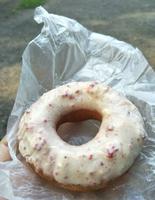 甜甜圈的内层比想像中还要湿软,虽然外层的巧克力及糖霜因为天气炎热而稍微融化,依然没有减低它的美味度,每一口都能感受到真材实料。而散布在表面的柠檬及草莓颗粒又为其增添了口感,是会让人想要回访的甜甜圈店!