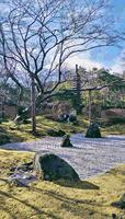 第一站我们先来到円通寺,円通院内有山门、石庭、三慧殿和本堂,是东北重要的文化财之一。如果是秋天来造访的话,可以看到整片的枫叶喔,但是因为是一月来的所以有种苍凉的枯枝感。下面这张照片就是石庭拍的,看起来就像小石子堆砌出来的池塘,闪闪发亮。
