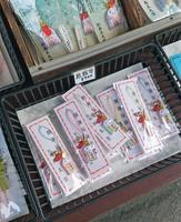 往五大堂的方向走可以看到红色的桥还有贩售御守和纪念品的小摊贩。五大堂与本州之间的红桥,在桥梁木之间大约有15cm的间隙,所以可以看到脚下的海。