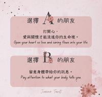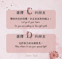 ?占卜开始?请先找个安静的地方静下心,将眼睛闭上,在心中默念:「我是OOO(你的名字),请问此时此刻宇宙带给我的指引是什么」慢慢睁开眼睛,请在以下卡牌中选择你睁开眼睛的第一眼感受最强烈那张牌卡。由左至右分别为A、B、C、D。