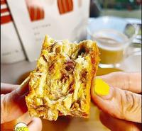 1.5公分厚的乌金雪砖饼不仅咬下都是奶香,每一口都有坚果耶!真的用料不错!很实在!建议可以先舔一下表面的乌鱼子感受一下再咬!