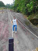 它是因为当初921大走山,因岩层顺着坡面向下滑动,形成45度角峭壁~~现在可成为觉效果虽险峻却安全,为草岭十景中,最陡峭、最具挑战性的步道。