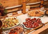 供餐时间17:30-19:00(因疫情关系会采取分流用餐)料理有着日本长崎特色的「桌袱料理」,结合中日西的饮食文化,创作出不同的料理特色,当日也会依入住情况安排自助buffet或桌袱套餐。