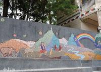 最后一站罗娜国小,有许多布农故事拼接壁画墙,听着导览才知道,每一幅画都蕴含了不同的故事意义,布农族的八部合音,是由四声部使用之母音分别为「o」、「e」、「a」、「i」,由低渐渐上升,一直唱到最高音域的和谐音,希望有机会可以听到现场的演奏!