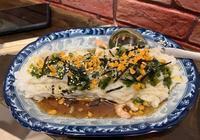 与一般的肠粉不同,肠粉内馅没有青菜但搭配葱酱、海苔丝、芝麻和可乐果搭配有五只鲜虾口感特别丰富