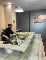 用餐区大概有6-8桌,其余是在吧台座位也可容纳6-8人,师傅只有三位,桌子数量有限所以一次只会放一批人进入唷~大家请耐心等待