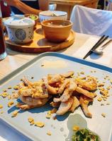 整只都可以吃的软壳蟹,苏菲平常没机会吃到软壳蟹,看到就想点来吃看看,有满满的蟹膏,外壳酥脆好咬,味道还是蛮特别的