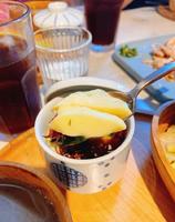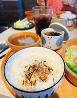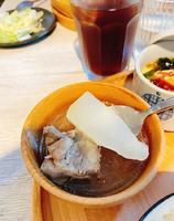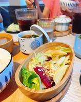 苏菲这次与四友人用餐,被安排在方桌区,环境舒适也没有油烟味,很不错,点了四份套餐,套餐均包含每日例汤、鲜蔬沙拉、茶碗蒸、白饭、清炒高丽菜、饮品,当天例汤是冬瓜排骨汤