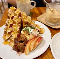 松饼的部分是外酥内软,搭上冰淇淋吃两者口味上的交织非常的match