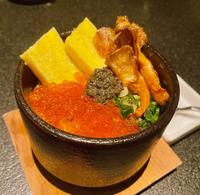 饭上有鲑鱼卵、松露酱、炸过蕈菇、玉子烧!!