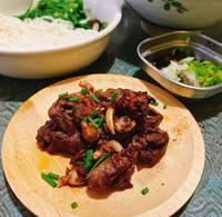1. 鸡心剪掉上头多余油脂,中间切开去除内部血块,跟1匙面粉抓匀接着洗乾净,用水冲洗到清澈之后跟葱还有洋葱以外的材料抓腌过夜。