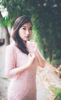 甜甜的粉红色,简单的剪裁配上淑女的小小鱼尾