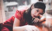 但朱颜酡些这几个字我觉得很好的映照了大红旗袍带来的微醺微醉
