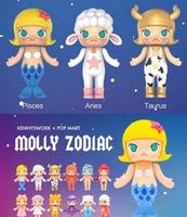 ● 泡泡玛特家的当家IP「Molly」(茉莉女孩),推出的众多盲盒之一《Molly十二星座系列公仔》中,有12个常规款+1个隐藏款的造型,其中将双子座拆成两款,所以共有13种造型。其中的「金牛座Molly」,是金发Molly加上金色牛角、领巾、小靴子,再搭配上乳牛黑白色系的吊带裤,俏皮又可爱。