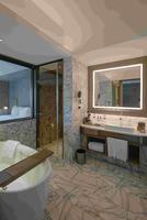 浴室用大理石纹的风格设计,非常有现代感,另外值得一提的是他们饭店全面使用Dyson吹风机,连泳池的更衣室也是,沐浴用品是瑞典品牌BYREDO,而且香味还是洲际限定!