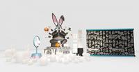 主展区的「巨耳兔的诅咒世界」特别设计成互动式,带着诡异笑容不停膜拜的兔子旁有着一面百家姓墙,触动不同姓氏所发出的旋律都不相同。