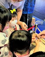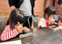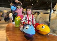 二楼还有DIY的教室,可以做非常多种不同的手作体验,姊妹这次做了鱼拓的书签和明信片,本来以为很简单的版画盖印鱼拓,其实对小朋友来说也是手眼协调蛮实在的练习。