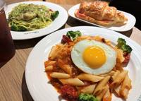 馆内的餐厅是丹堤咖啡的门市,在tb地区已经很少看到丹堤咖啡的妈妈觉得颇为亲切,义大利面落在200元之内让人觉得很感恩,而且餐点的口味刚好很合小孩的胃口,眼看两个大人两个小孩,叫了两盘面一个三明治和三杯饮品。但最后姐姐跟妹妹食慾大开整个吃光自己的面条还抢夺妈妈2/3的三明治。