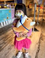 我们只好再去旁边的摊位买BO熊鸡蛋糕,BO熊鸡蛋糕因为是现点现做,制作的过程当中,姊妹就在旁边的渔乐嘉年华-美式游乐场玩耍,妹妹幸运的玩到了中型娃娃,姊姊也拿到了小的娃娃大家都很满足。