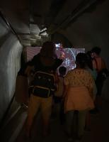 旅客观展时从社区进入防空洞,亲身走访曲折神秘的避难通道,并在融入声景设计的环境下体验躲避空袭的紧张氛围