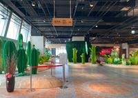 往左边走过去,有一片绿油油仙人掌的造景